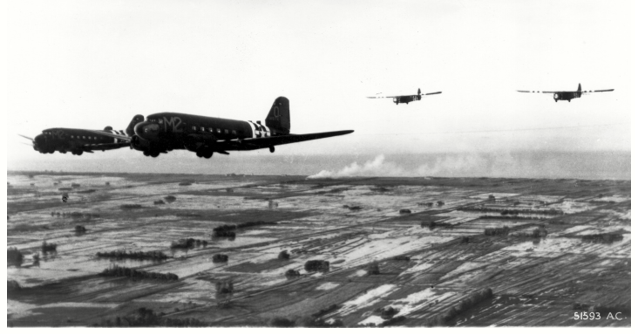 THE LONDON BLITZ: THE FIRST NIGHT’S BOMBING, 7 September 1940 (photo: German Luftwaffe / RAF Museum) – A German Luftwaffe bomber – Heinkel He 111 – flying over Wapping and the Isle of Dogs in the East End at the start of the Luftwaffe’s evening bombing raids over London.