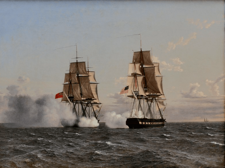 “Battle between English Frigate Shannon and American Frigate Chesapeake” (Danish painter, Christoffer Wilhelm Eckersberg, 1836; owner, Villy Fink Isaksen, public domain)