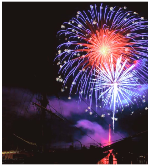Fireworks over a Sailing Ship. (photo: Shunyu Fan) AI Image Enhanced